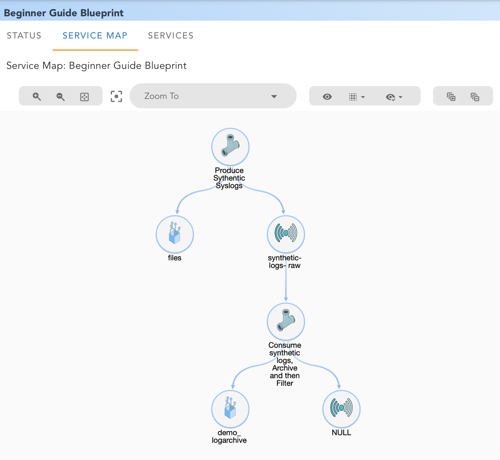 So far the pipeline generates 100 randomly selected log messages and writes to a stream. But, it does only one time. We can use control bots to bring looping to the pipelines.