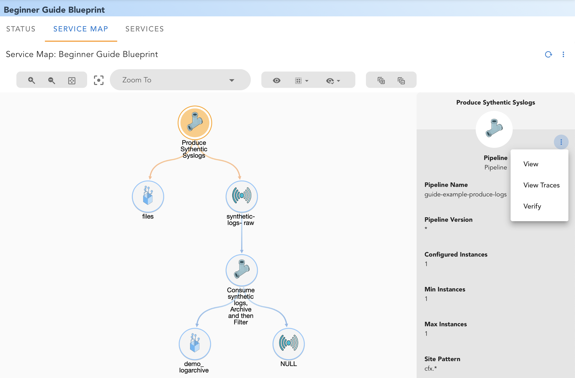 For this exercise let us start creating a new pipeline guide-example-consume-logs.