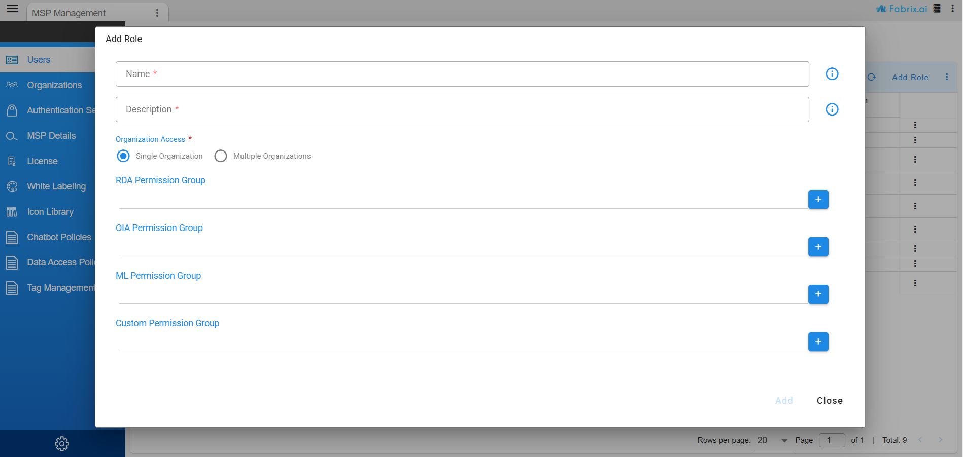 Each role also specifies the Organization Access level, determining whether a user can access data from a single organization or multiple organizations. Based on this, one or more organizations can be assigned to a User Group, ensuring users only access data from the designated organizations.