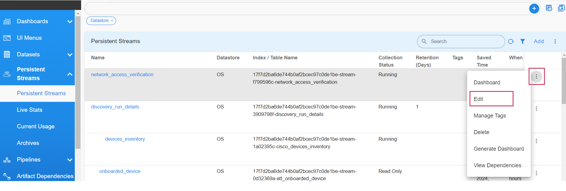 Persistent streams can be managed through RDAF UI portal or using rdac CLI.