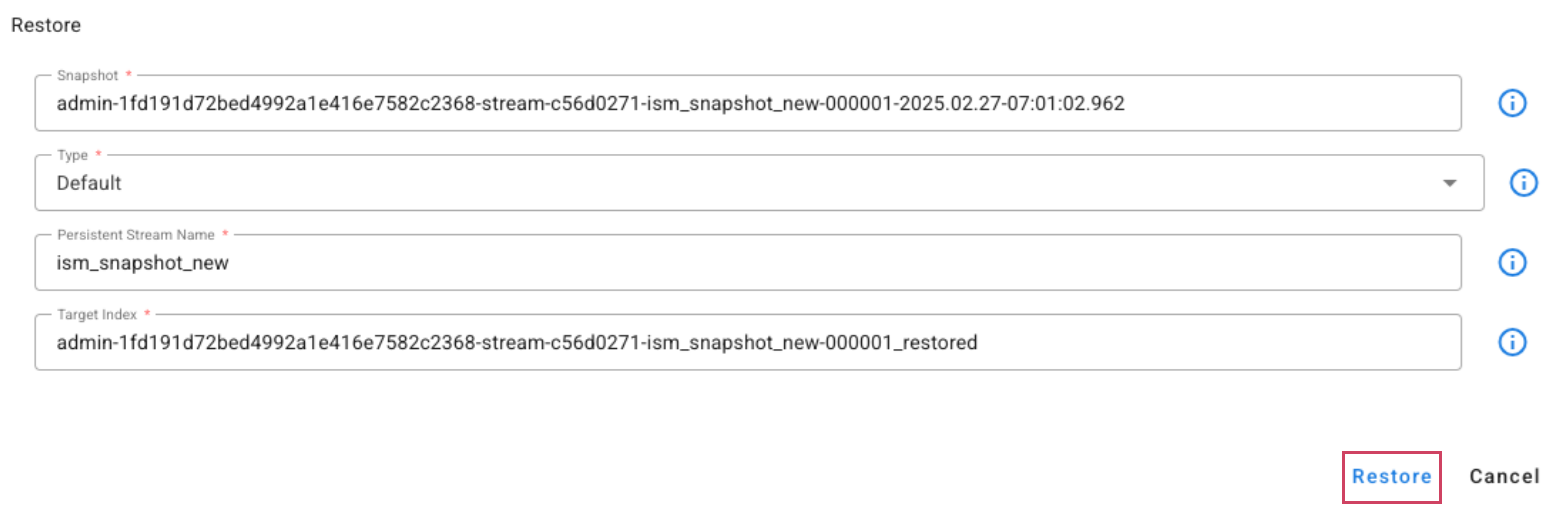 stream The name of the pstream. Both the source and target pstreams must reside on the same OpenSearch cluster. If the target pstream does not already exist, it will be automatically created within the same cluster as the source. This ensures that both are either within the platform's OpenSearch or on an external OpenSearch instance. Enabling automatic creation of the target pstream is recommended, as it guarantees proper generation of all field mappings.