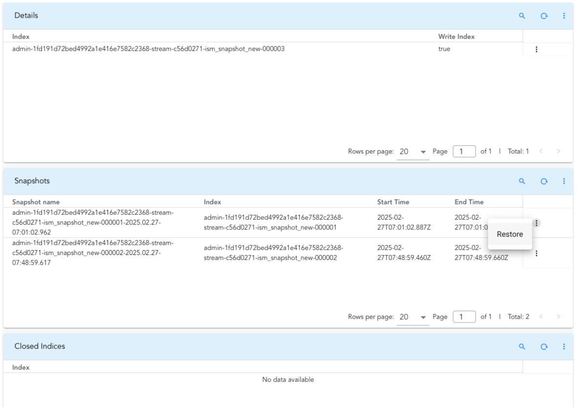 Streamed data is persisted in index store (database) which is consumed by many features or usecases. Below are some of the features or usecases (not limited to) which leverages the persistent streams.