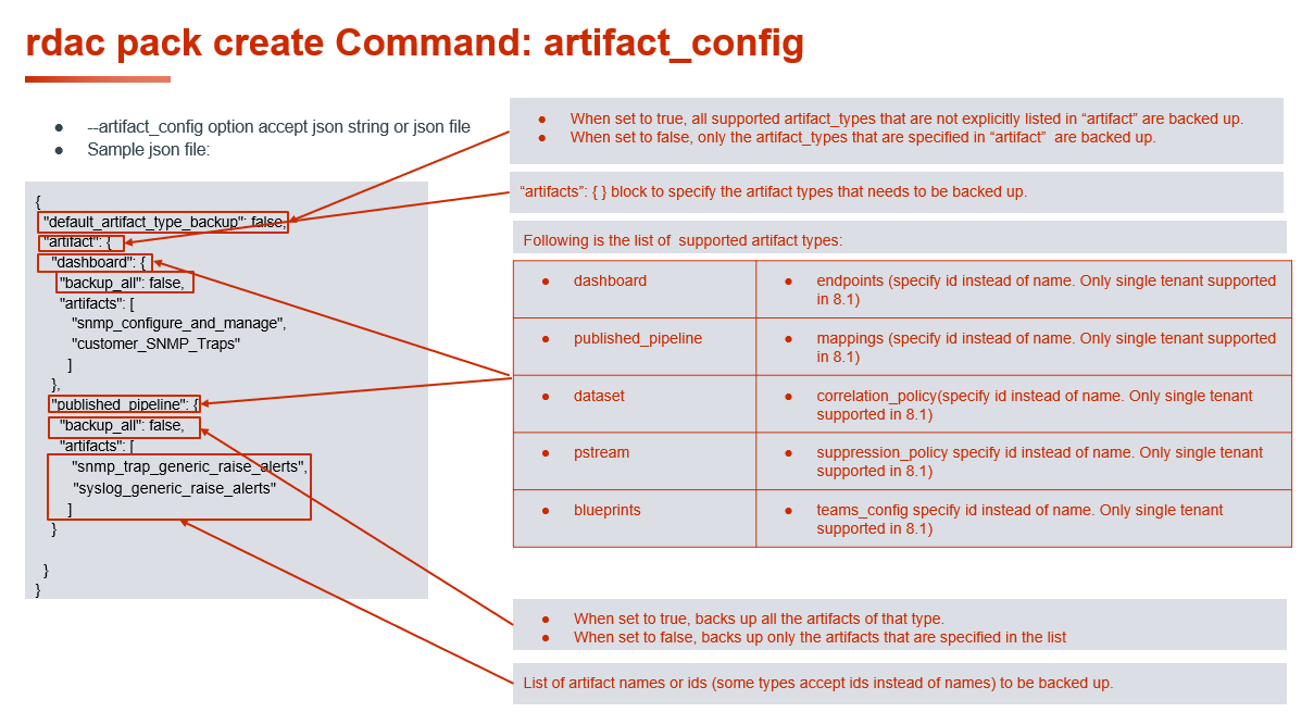 A pack can include the following supported artifacts: