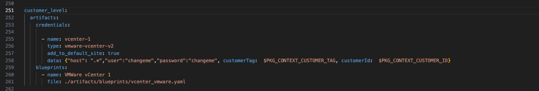 In the example shown above when the pack is enabled for, say customer with tag customer1 then credential & blueprint will be created with names customer1_vcenter-1 & customer1_vCenter 1.