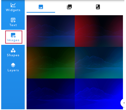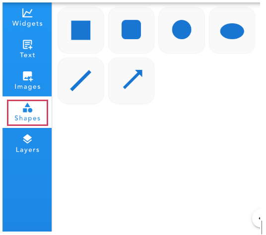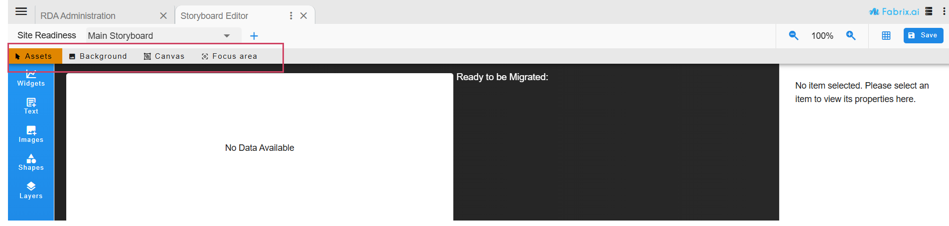- In Assets, user can place widgets, texts, images and visual objects (geometric shapes, lines) to the storyboard