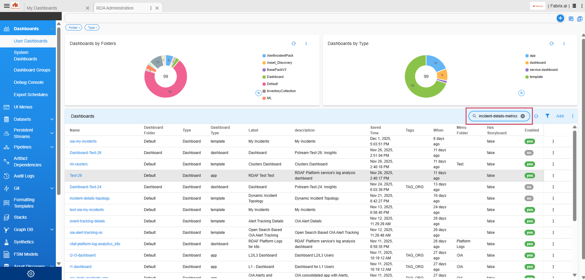 To get the latest OIA Alerts and Incidents Dashboard changes, please activate the Fabrix AIOps Fault Management Base Version 9.0.14